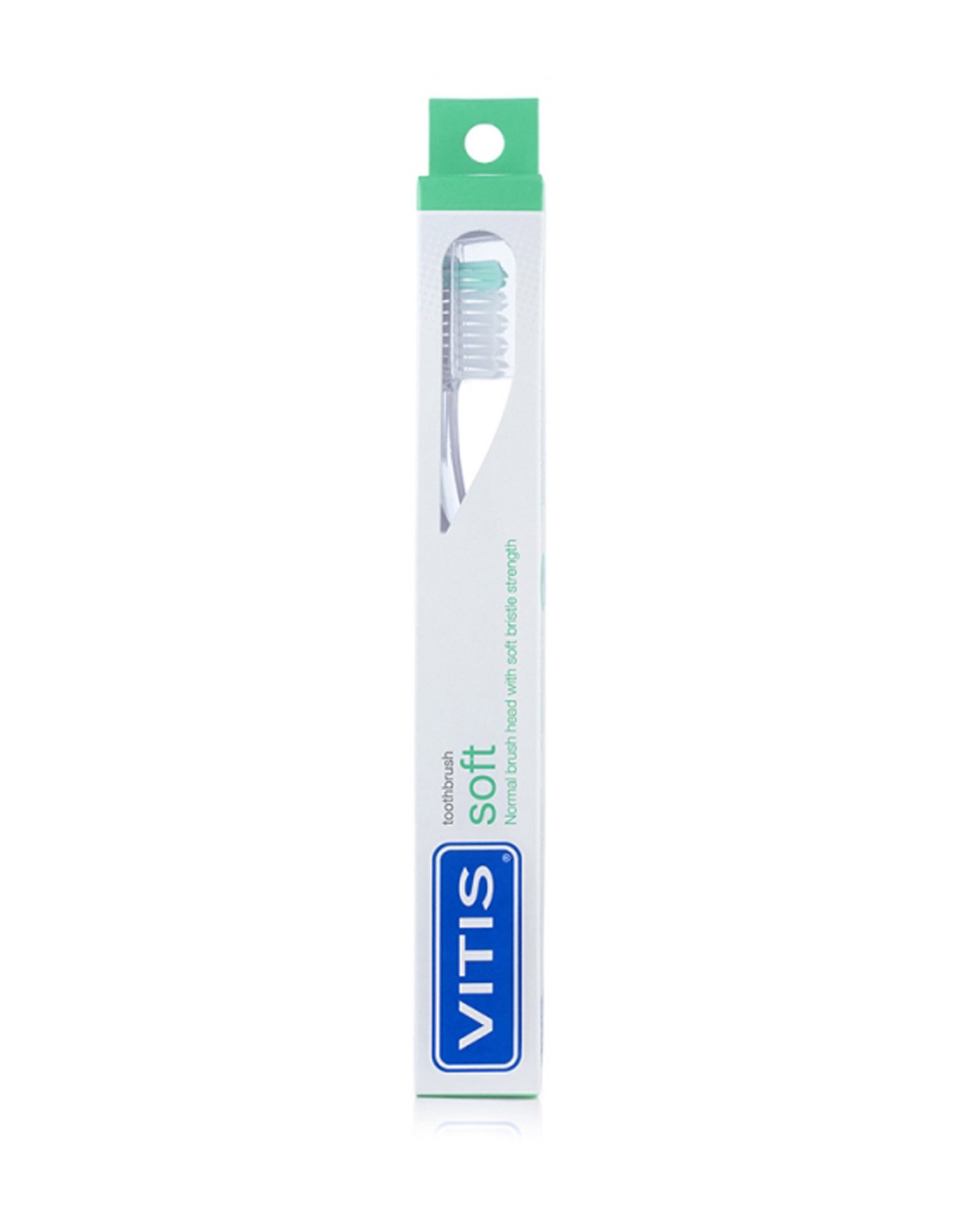 The VITIS® soft toothbrush features soft filaments especially designed to effectively remove oral biofilm (bacterial plaque).