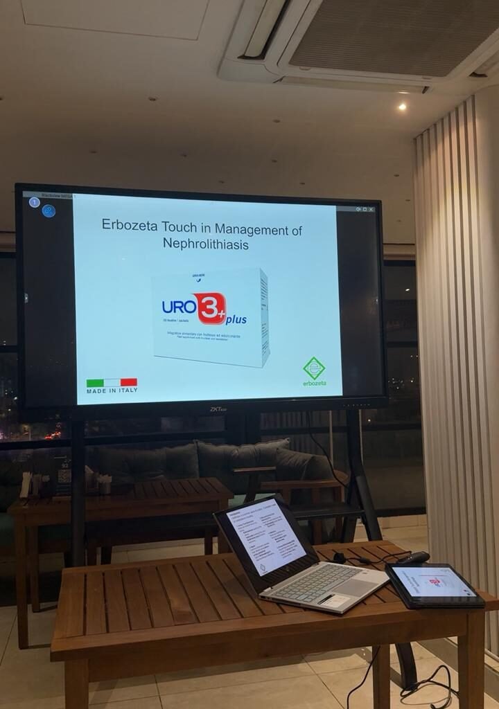 The scientific session focused on “Erbozeta’s Approach in the Management of Nephrolithiasis”, with special emphasis on URO3 Plus as a supportive option in the prevention and management of urinary stone disease. During the presentation, current clinical challenges in nephrolithiasis were discussed, including recurrence prevention, patient compliance, and long-term metabolic management.